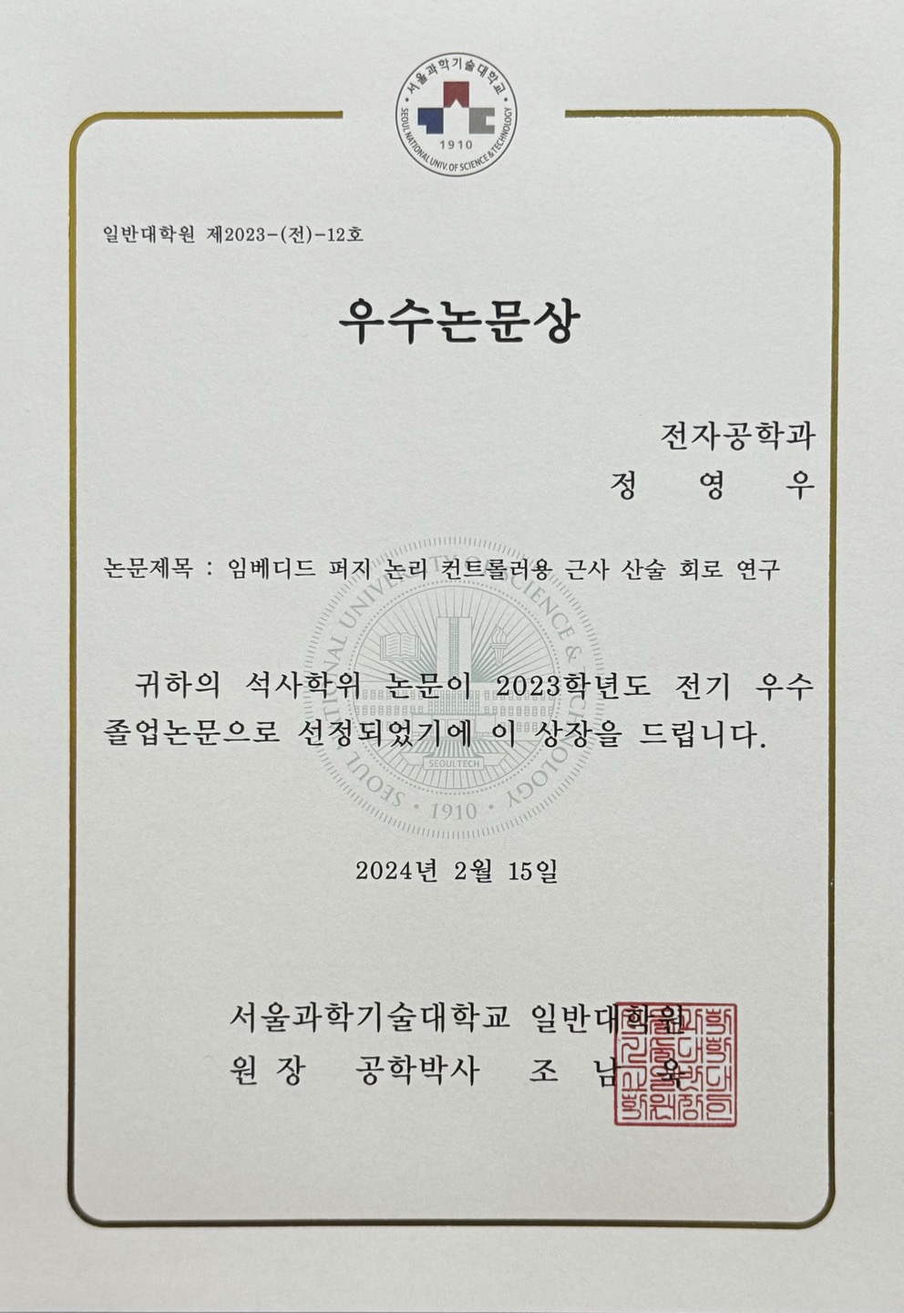 • Feb 2024 – Completed M.S. in Electronic Engineering at Seoul National University of Science and Technology (Seoultech).